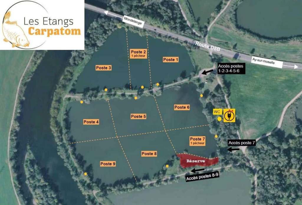 - L’Étang Carpatom est réputé pour la qualité de son cheptel. Les carpes y affichent un poids moyen de 13 kg, avec des spécimens dépassant les 26 kg. Aux abords de la Moselle, les crus des années passées ont laissé entrer de puissantes communes de rivière qui assurent des combats puissants.