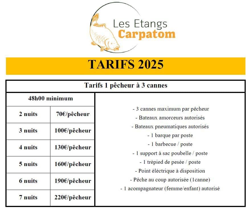 - Maximum 3 cannes par pêcheur, avec 1 canne au coup autorisée en supplément