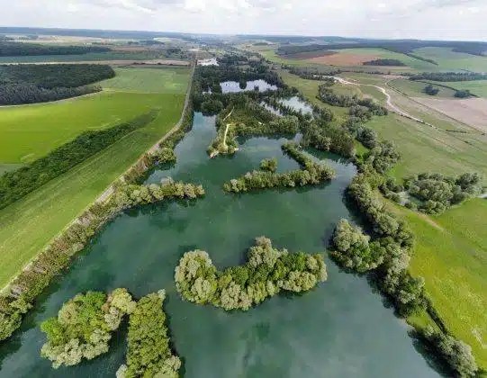 - Superficie du plan d’eau : ~20 ha sur un domaine total de 25 ha