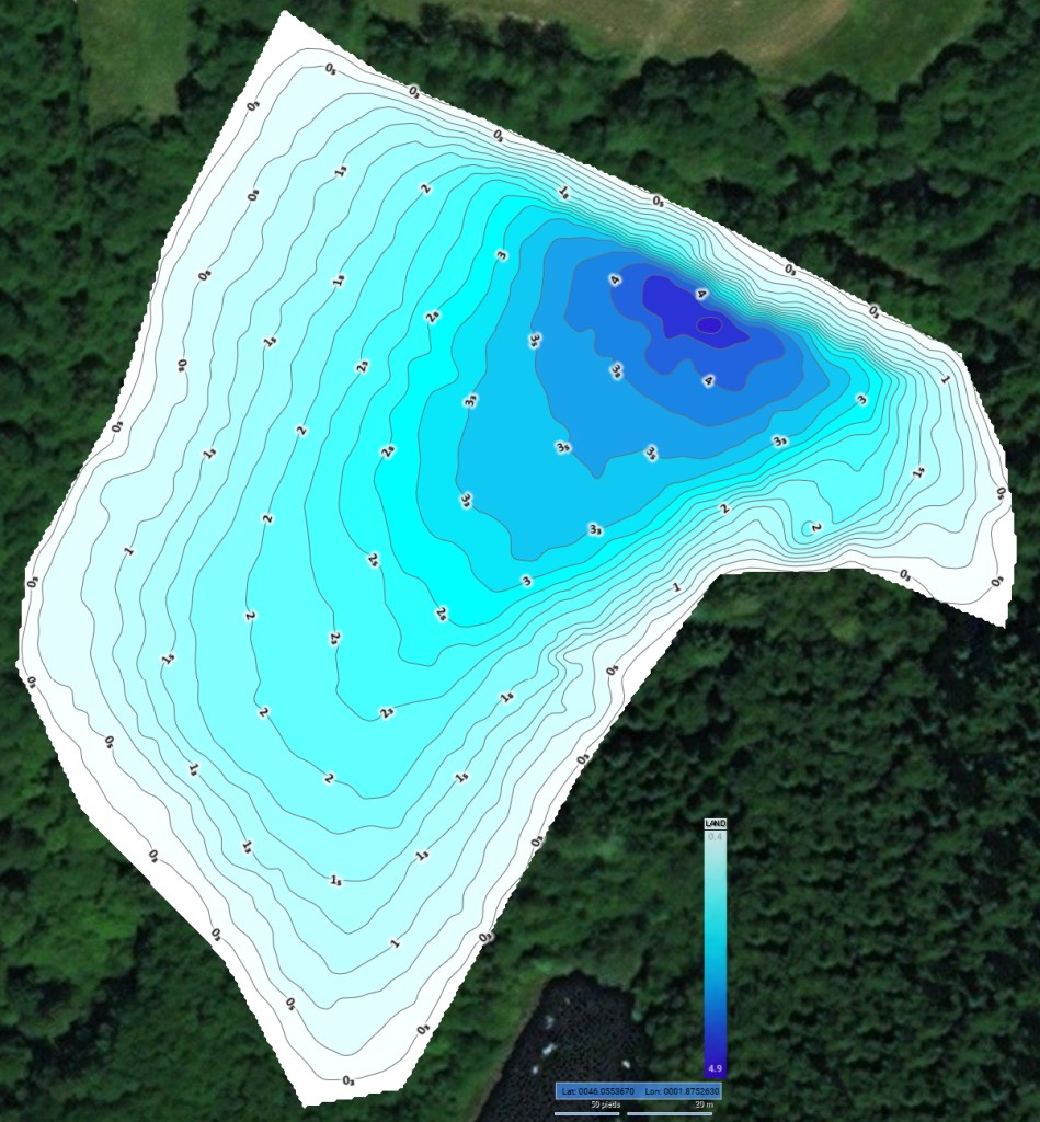 Poste 4 particulièrement apprécié : ponton, zones de densité variable et intérêt élevé (zones de murets immergés et pentes douces jusqu’à 4,2 m)